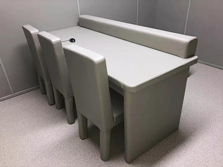 審訊談話桌椅防撞軟包桌椅以前傳統的海綿軟包和軟包資料現已不能滿意現代紀檢委審問室的裝修規范了,紀檢委審問室是…